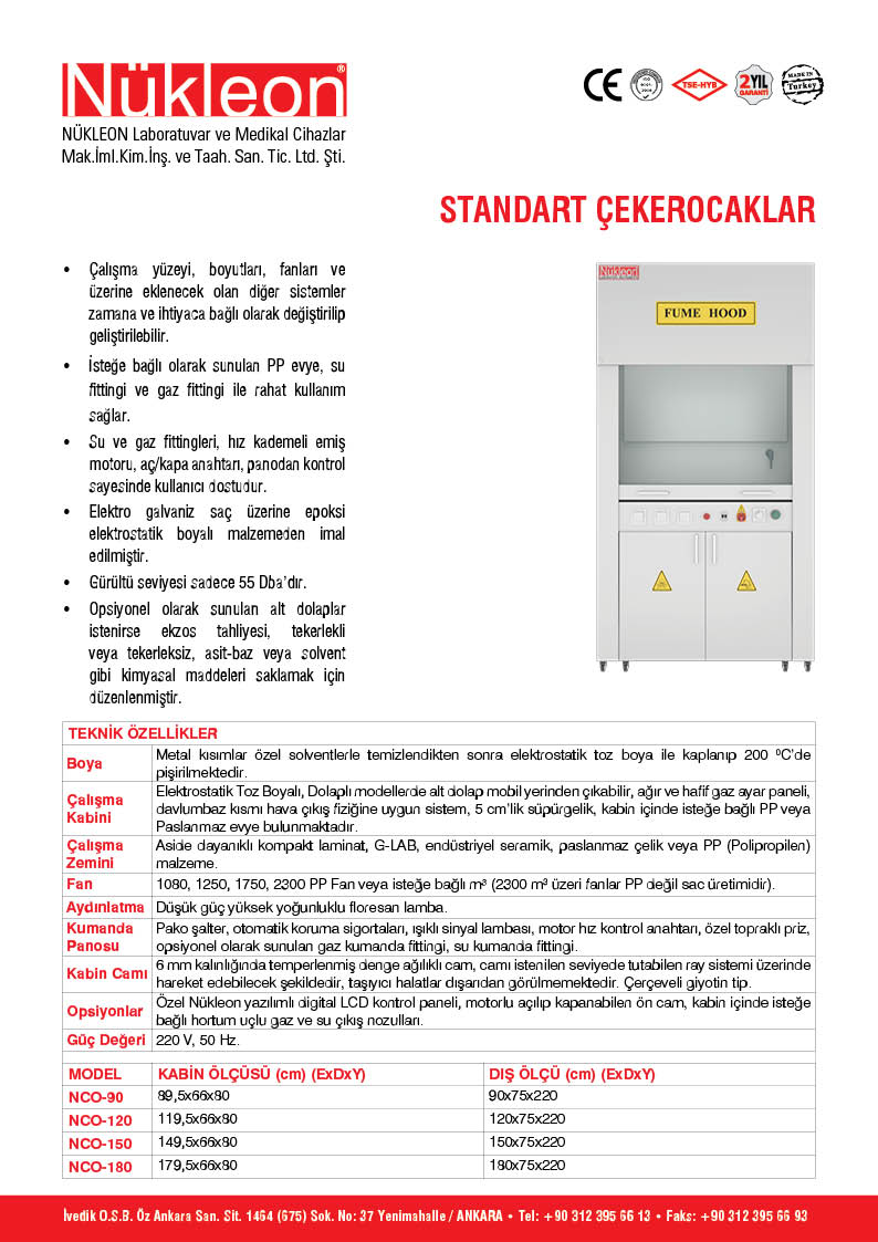 NCO Standart Modelleri : 90 / 120 / 150 / 180 veya özel üretim